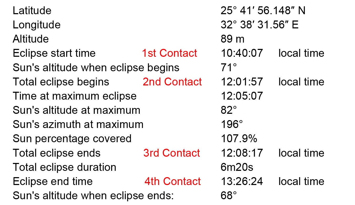 Eclipse information for Luxor, Egypt:
